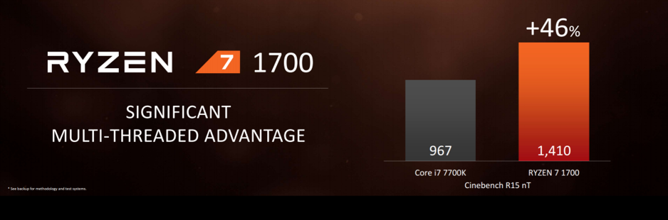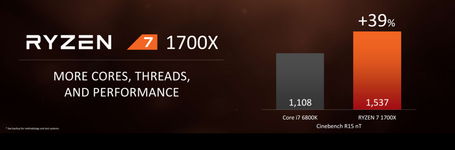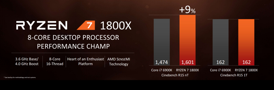 AMD made use of the Cinebench benchmarking tool to show that the Ryzen R7 1800X with 16GB of DDR4 RAM and a 12GB NVIDIA TITAN X and an AMD4 based motherboard to match the i7-6900K machine with the same components except an ASUS STRIX X99 instead of an AMD4 based motherboard.
